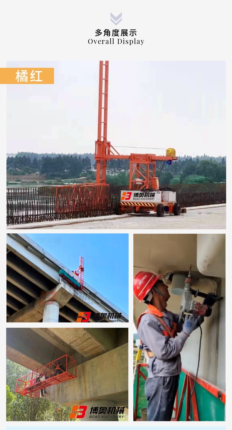 橋梁(liáng)排水管安裝(zhuāng)設備結構如(ru)下:由行走系(xì)統、支撐架、電(dian)控箱🐪、安裝架(jià)、4米吊籃、配重(zhòng)以及插銷、斜(xie)拉杆、電纜等(deng)組成。